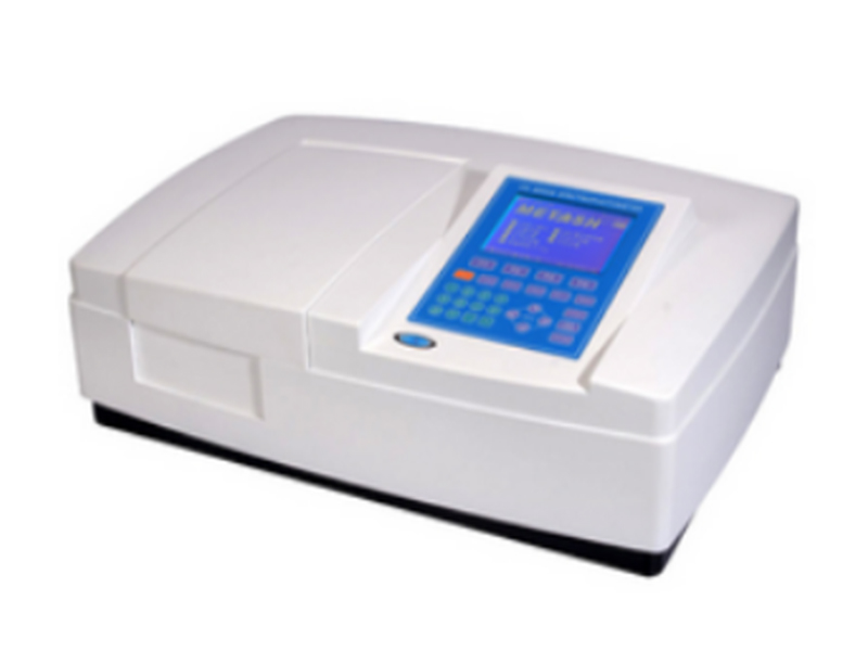 上海元析V-5800(PC)型可見分光光度計波長范圍320-1100nm,光譜帶寬2nm,雜散光≤0.05%T;V-5800(PC)型可見分光光度計雙光束比例監測光學系統,波長自動校準、自動設定、偏差自我修復,能直接建立標準曲線,V-5800PC型標配元析公司的掃描軟件可直接完成光度測量、定量測試、定性測試、動力學測試、多波長測試、DNA/蛋白質測試及數據圖譜的處理。